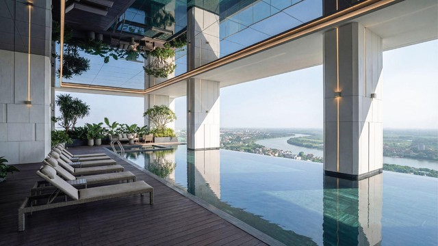 Các căn hộ được hoàn thiện với hệ kính Low-E ba lớp chạm sàn, vừa kiểm soát bức xạ nhiệt và tia UV, vừa mở ra tầm nhìn panorama không giới hạn về phía sông Hồng hoặc không gian sinh thái xanh mát. Ánh sáng tự nhiên theo đó lan tỏa sâu vào không gian sống, trong khi vẫn bảo đảm sự dễ chịu về nhiệt độ và hiệu quả sử dụng năng lượng.