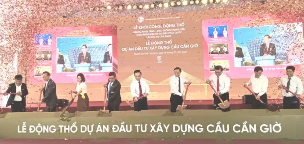 Xấp xỉ nửa tháng sau lễ động thổ tuyến metro Bến Thành - Cần giờ, ngày 15-1-2026, TPHCM tiếp tục động thổ xây cầu Cần Giờ.